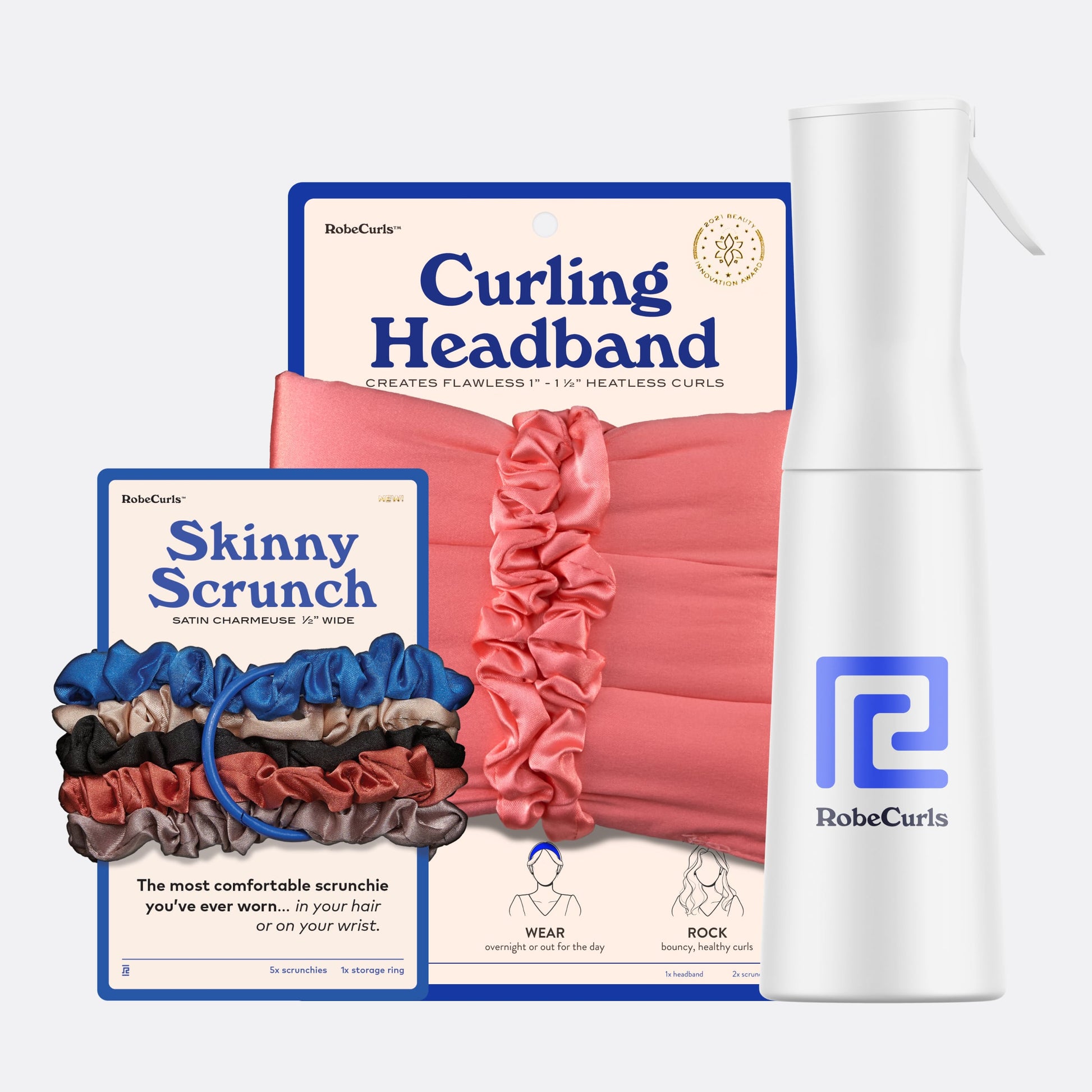 Together, the Curling Headband™, Skinny Scrunch™, and Mr. Spritzer make an ideal combination for achieving beautiful, long-lasting curls with ease and comfort.Try our bundle today and experience the magic of heatless curls with RobeCurls®.